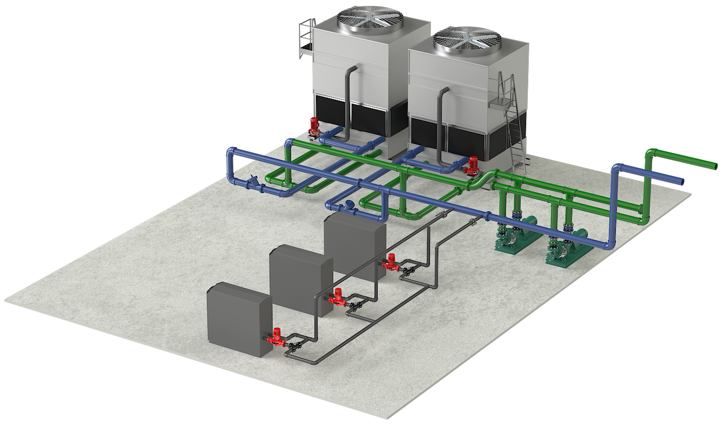 | WSHP-40 Animation included Pump Impeller Rotation Cooling Tower Fan & Water & Boiler Heating Call for Pricing |
