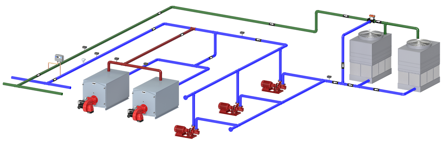 | WSHP-20 Animation included Pump Impeller Rotation Cooling Tower Fan & Water & Boiler Heating Call for Pricing |
