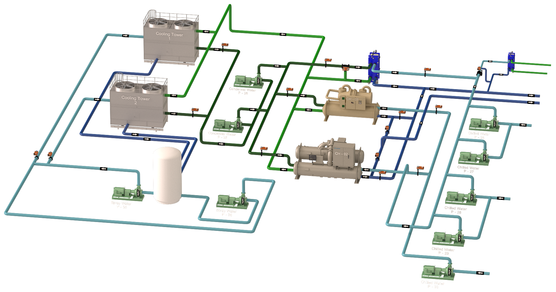 | CHWS-311 Animation included Pump Impeller Rotation & Chiller Fans Call for Pricing |